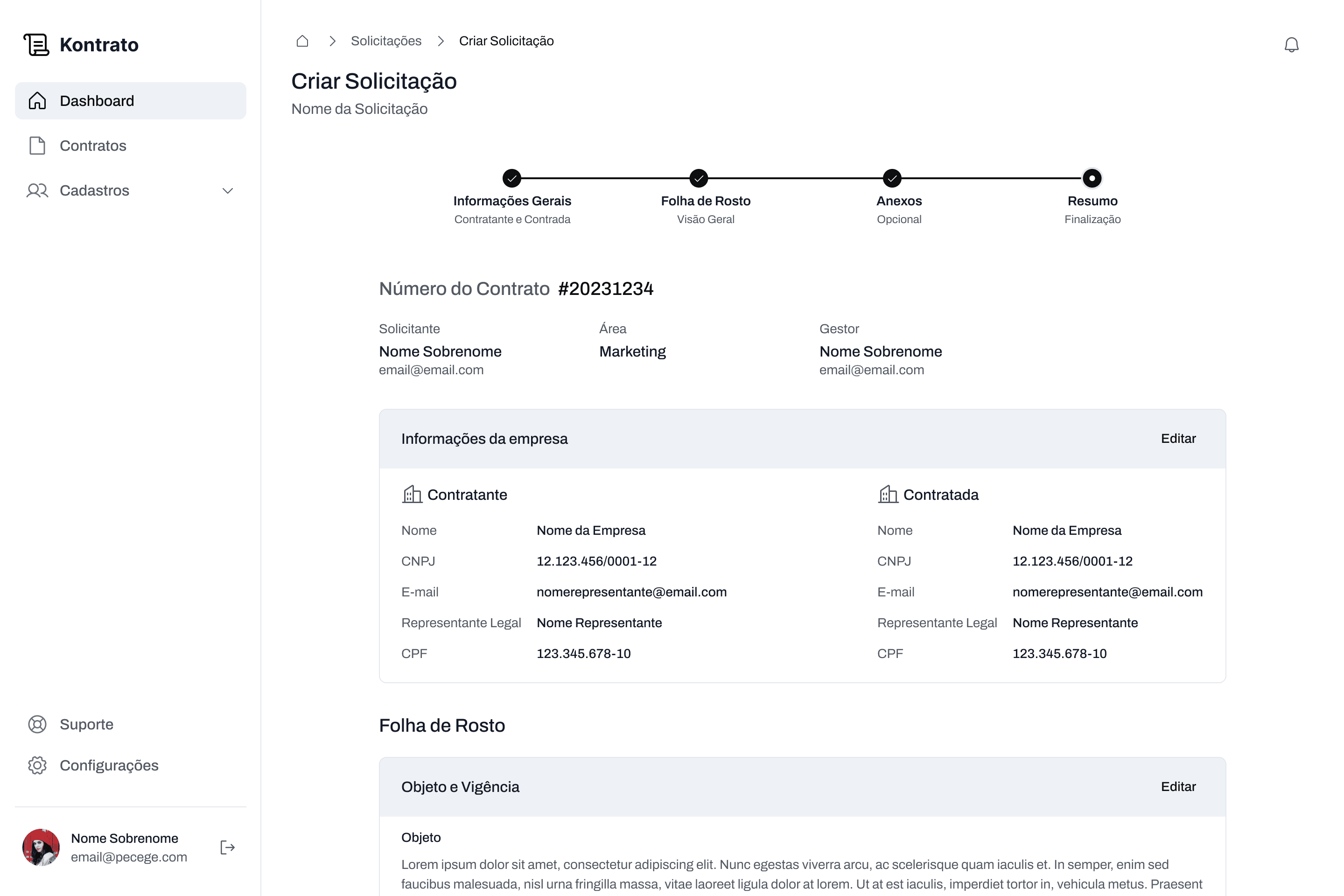Falta de centralização e rastreabilidade no processo de gestão de contratos, gerando atrasos e dependência excessiva de poucos membros da equipe.